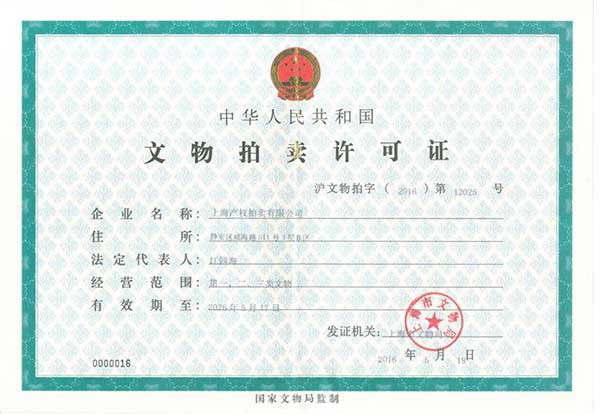 2016.5上海產(chǎn)拍獲得國(guó)家一類文物拍賣許可證