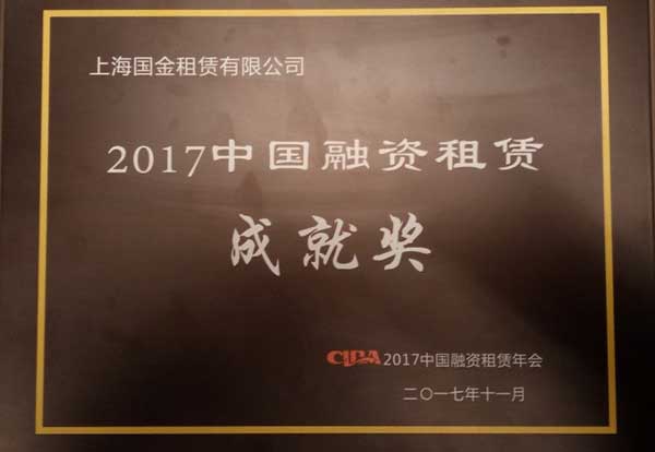 2017.11國(guó)金租賃獲“2017中國(guó)融資租賃成就獎(jiǎng)”