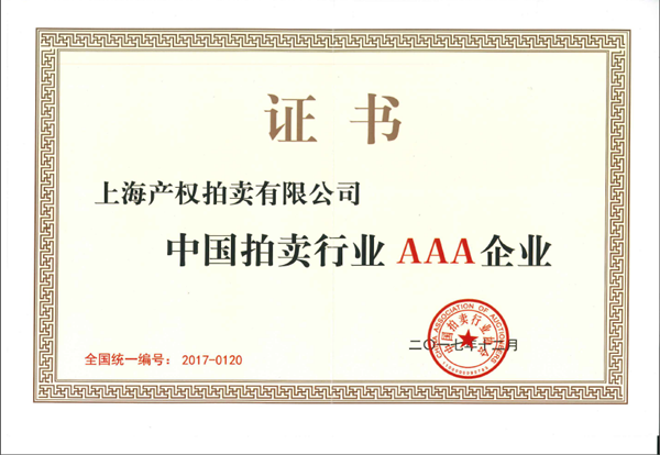 2017.12上海產(chǎn)拍獲得“中國(guó)拍賣行業(yè)3A企業(yè)”證書