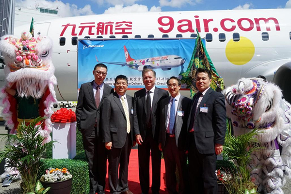 7月15日正值美國波音公司成立一百周年紀(jì)念日,主持本次交接儀式的波音公司737項(xiàng)目戰(zhàn)略主管Pickering先生說,B1552是波音公司一百周年紀(jì)念日交付的第一架B737-800飛機(jī),是上海國金租賃有限公司投資的第一架波音B737-800飛機(jī),而且是九元航空有限公司以融資租賃方式直購的第一架波音B737-800飛機(jī),三個“第一”匯聚在特殊的日子,預(yù)示著更加美好的新起點(diǎn)開始,衷心祝愿波音公司、九元航空有限公司、上海國金租賃有限公司基業(yè)長青,續(xù)創(chuàng)輝煌,在波音公司第二個百年紀(jì)念日再次聚首。